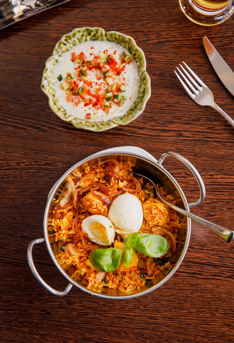 Biryani: A fragrant, spiced rice dish served with your choice of tender meat or vegetables, making it a favorite for many guests.