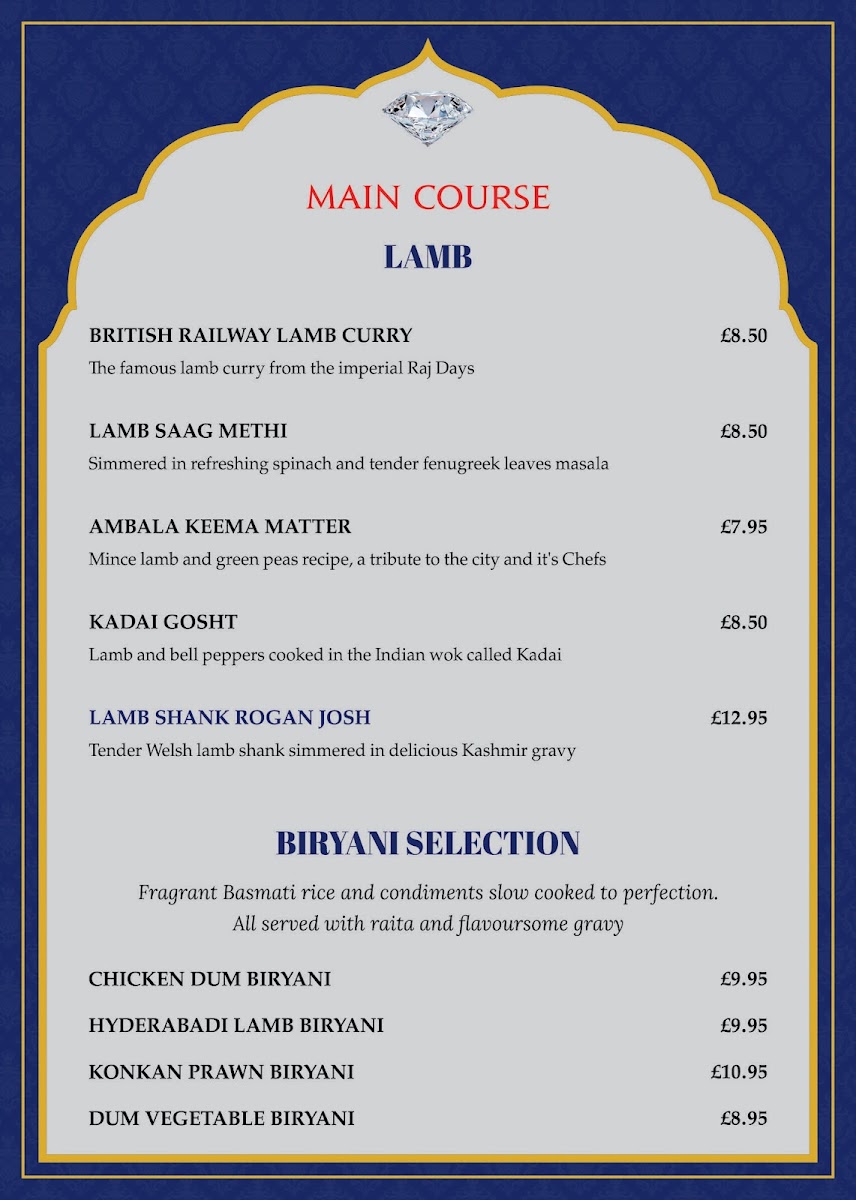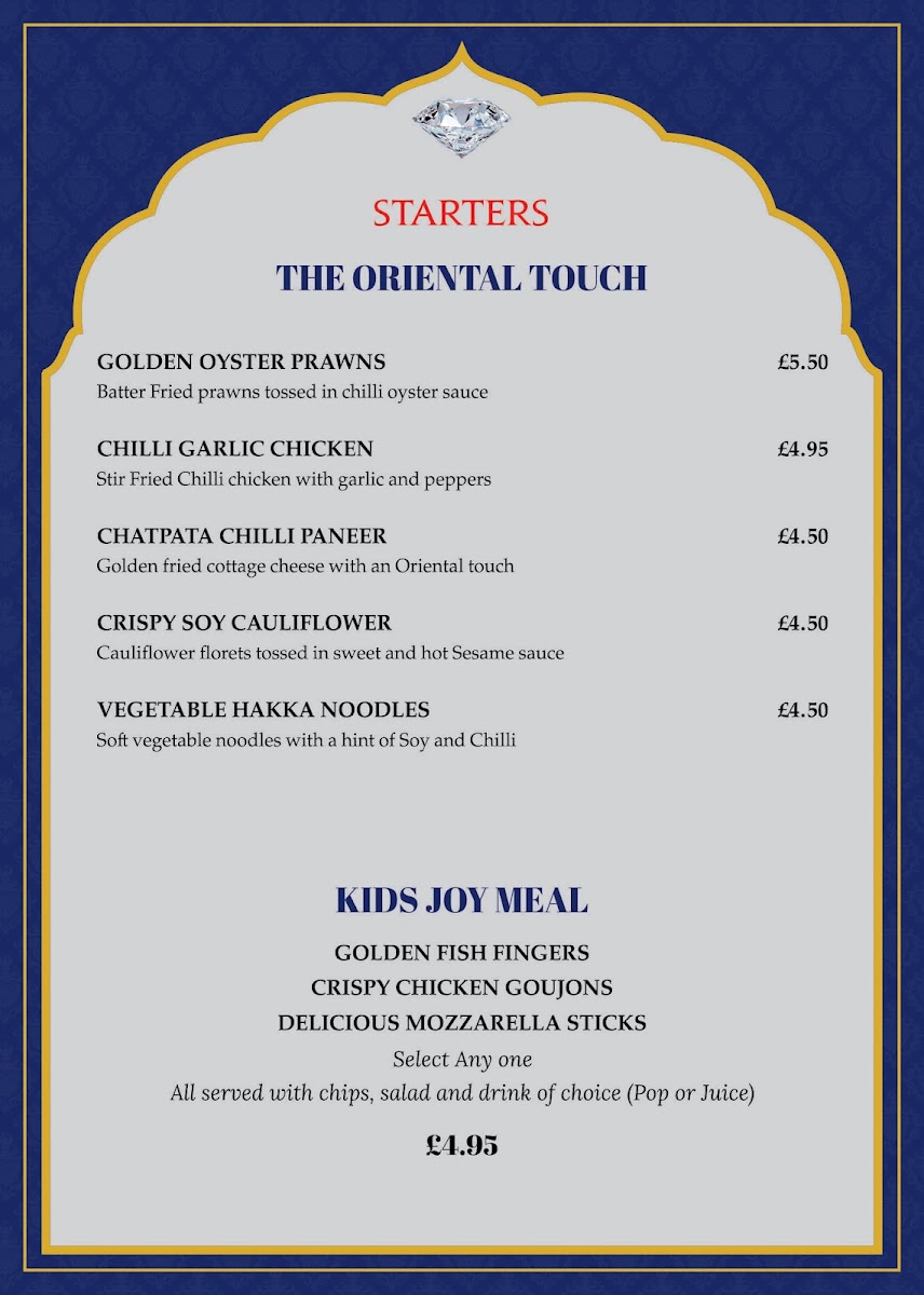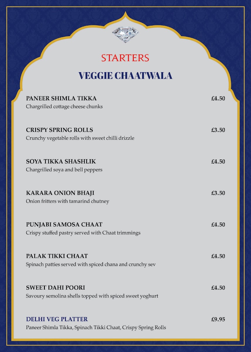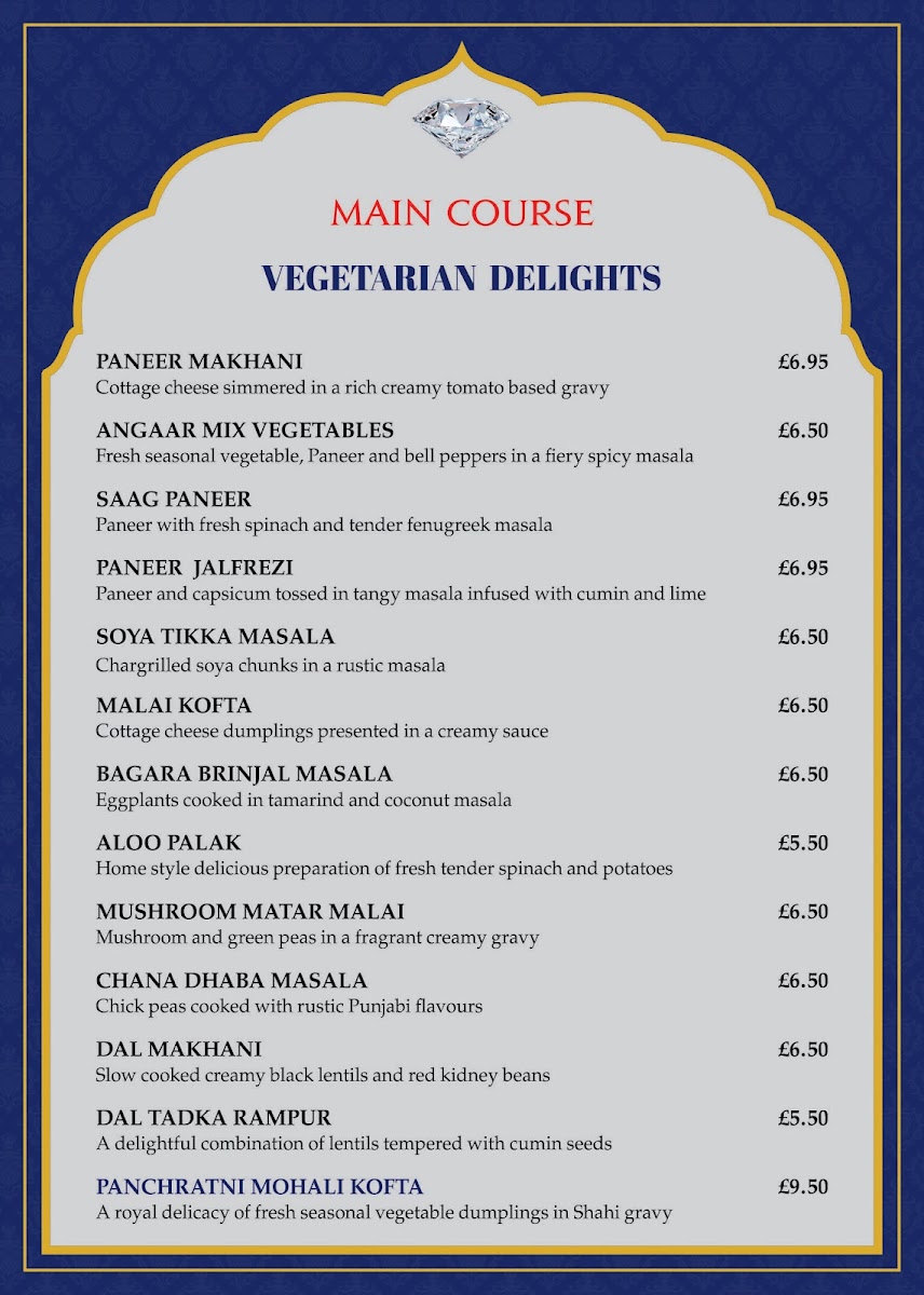 The Mohali By Chef Mandeep Menu features a diverse array of dishes that showcase the rich flavors of Indian food, with a special focus on regional specialties. The menu includes everything from classic favorites like buttery chicken tikka masala and aromatic biryanis to more adventurous options such as tandoori lamb chops and flavorful vegetarian delights. Each dish is crafted with precision, using fresh ingredients and authentic spices that are finely balanced to provide a memorable experience.